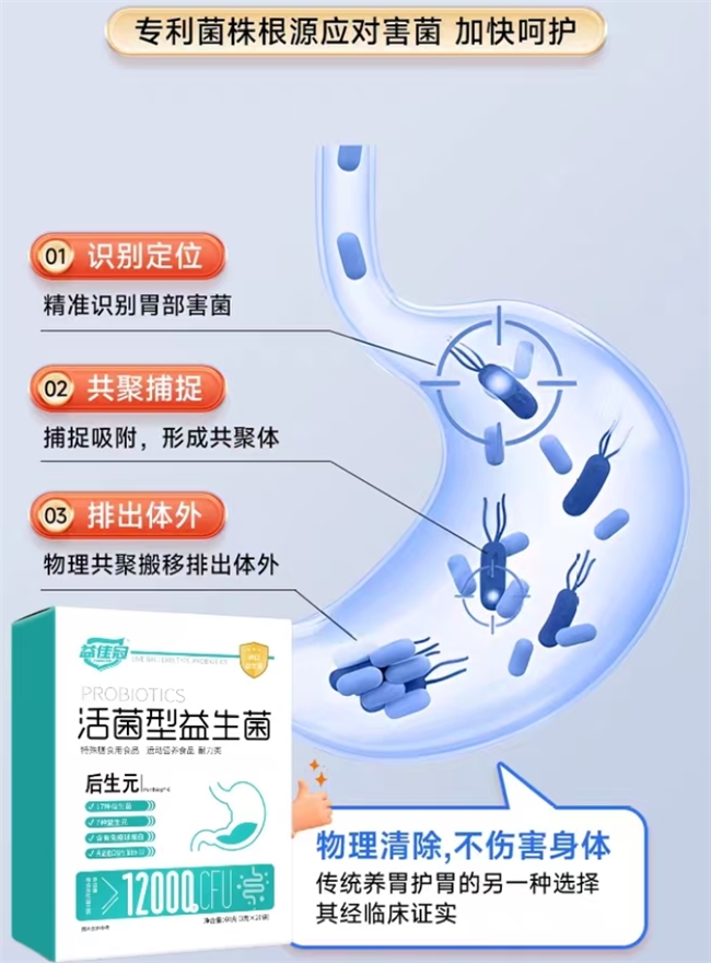 A:这是一个关乎存活率的关键问题。建议饭后30分钟内服用。此时食物中和了胃酸,胃内的酸度降低,为益生菌通过胃酸这道“鬼门关”提供了天然的掩护,存活率大大提升。当然,像益佳冠这类采用多层包埋技术的耐酸款,饭前饭后均可。